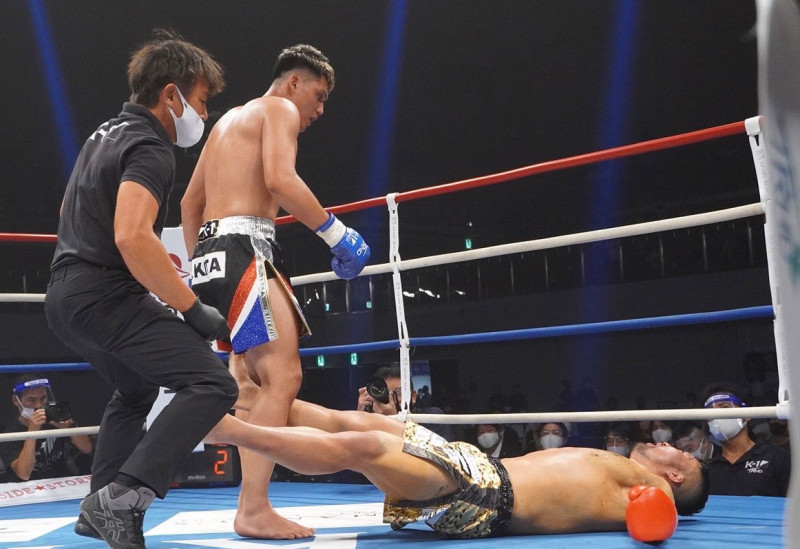 AKIRAのパンチでANIMALがダウン