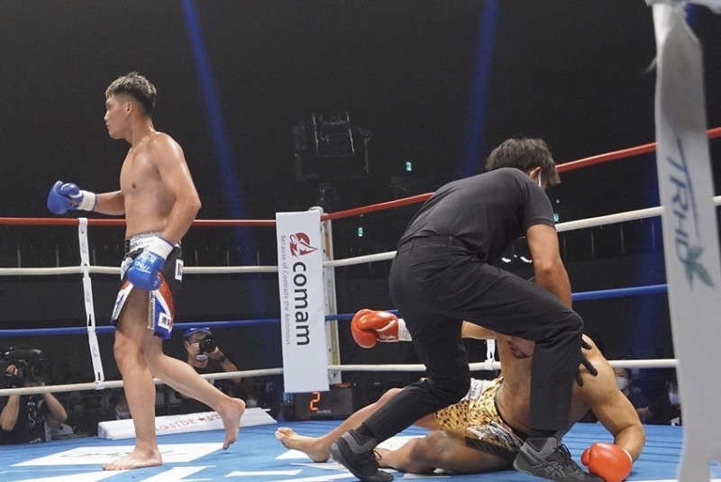 初参戦のAKIRA(左)がKO勝利