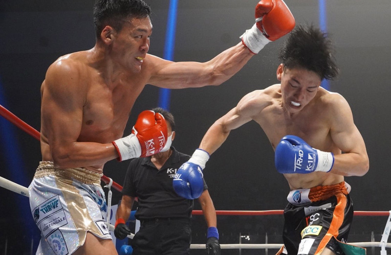 左のパンチを振るう鈴木