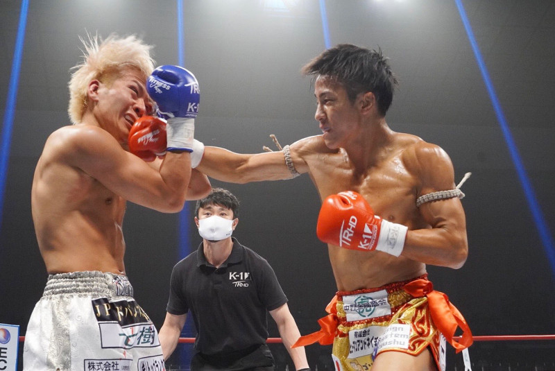 強烈なパンチを当てる石井