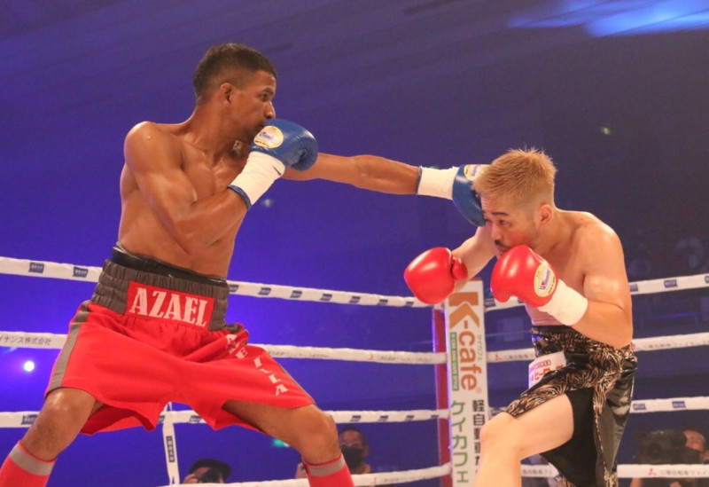 強烈なパンチで攻めるビリャル(左)