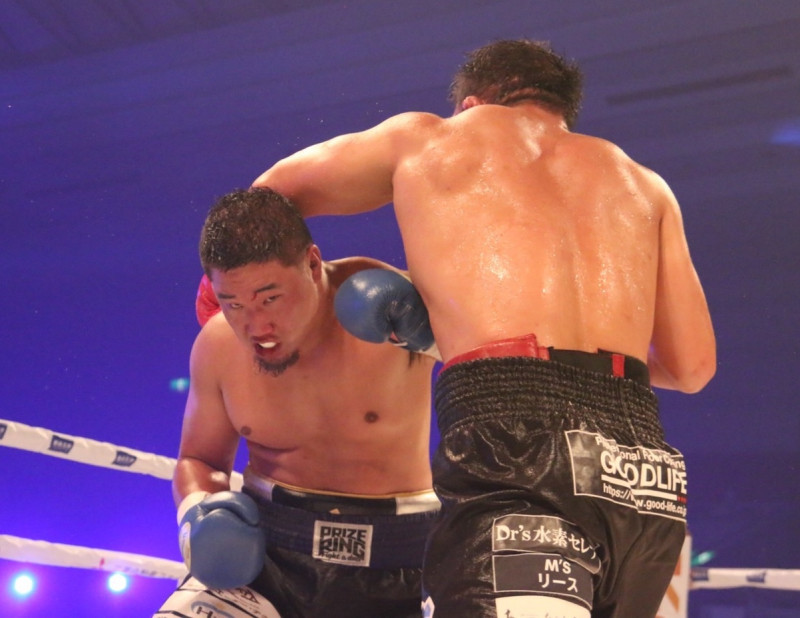 高山(左)と石井、両者パンチを出す