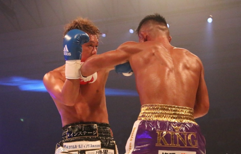 パンチを打ち合う両者