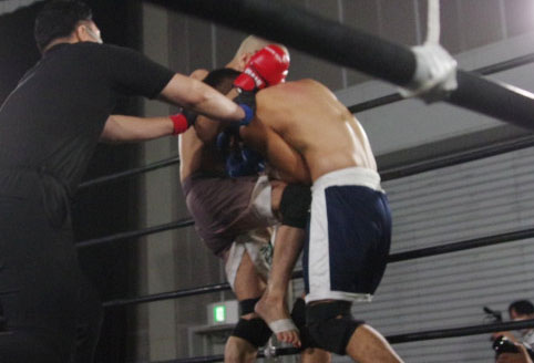 こめおの膝蹴り!