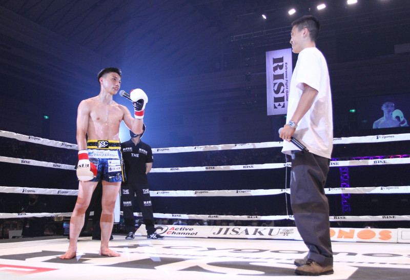 大﨑(左)の呼びかけに応え風音(右)がリングへ