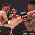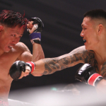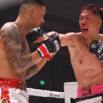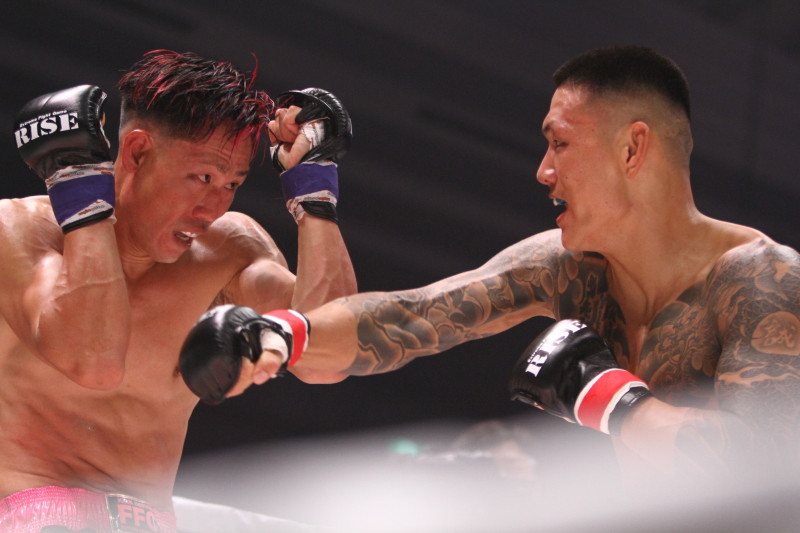 蛇鬼(右)と萩本がオープンフィンガーグローブで迫力の打ち合い