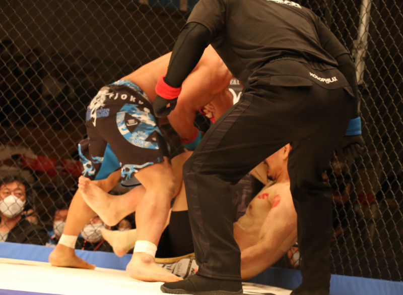 鈴木のパンチでダウン、そしてパウンドでレフェリーが止めTKO勝利