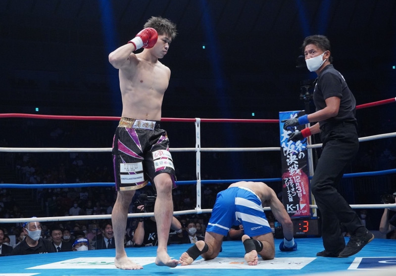 超強豪のメレティスがダウン!和島(左)がKO勝利を収めた