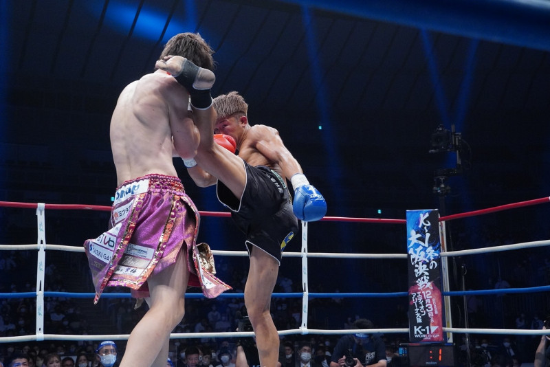 朝久の強烈な中段蹴り!