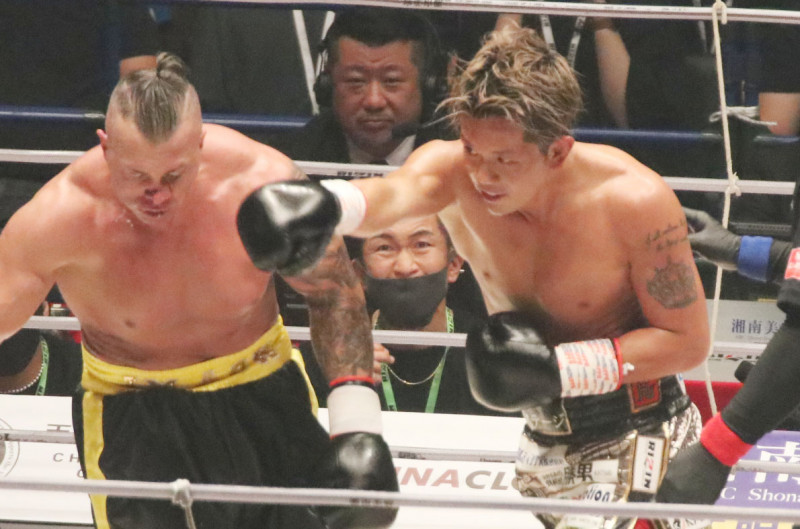強烈なパンチをヒットさせる皇治