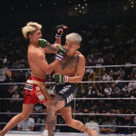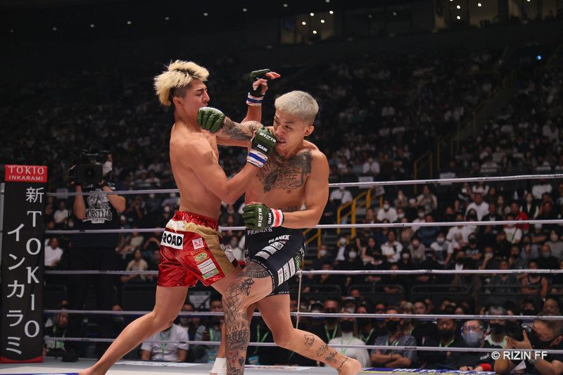 右ストレートをヒットさせる萩原©️RIZIN