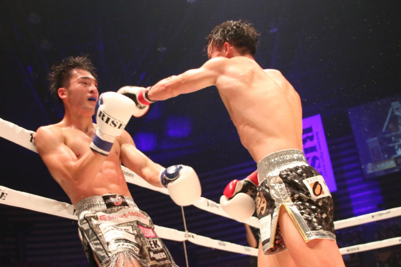 パンチで攻める志朗(右)