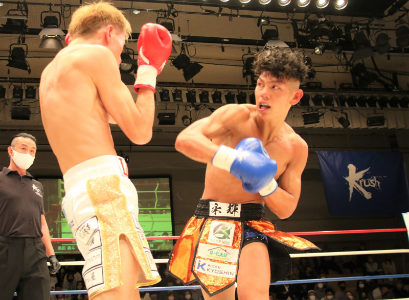 パンチの強打で攻めた倉田(右)は黒田(左)に競り勝った