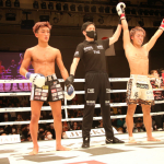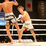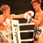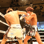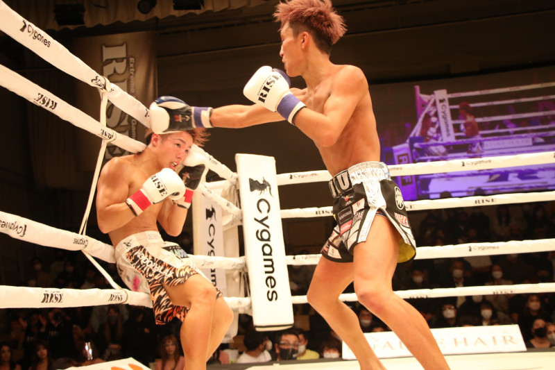 数島のパンチを受けながら、ロープを利用してディフェンスしていた