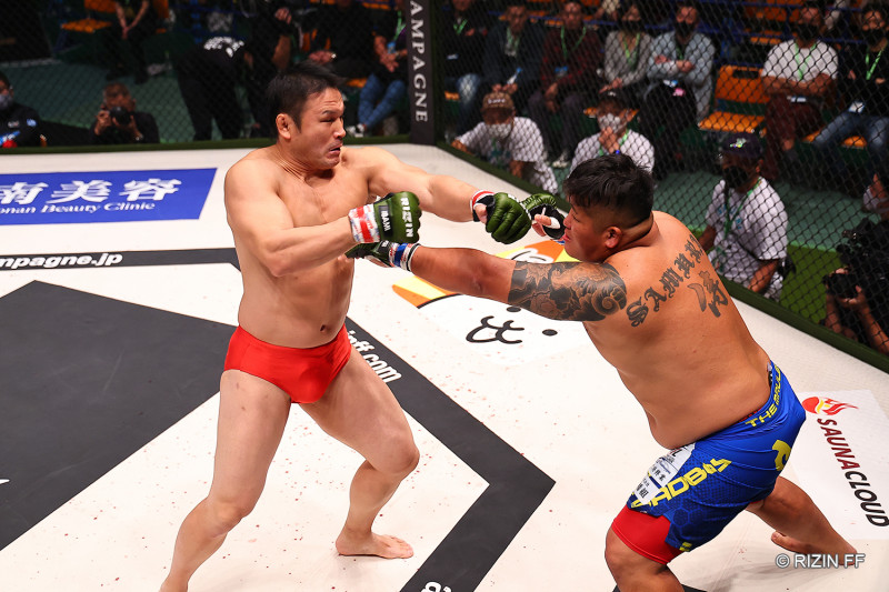 ミノワマンの打撃がヒット!