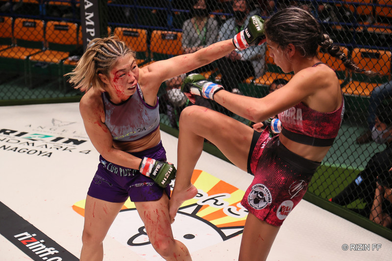 流血しながらもパンチで攻めていくSARAMI