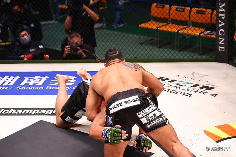 1、貴賢神が連打を避けタックル!▶︎次は怒涛のパウンド連打へ!
