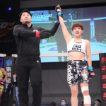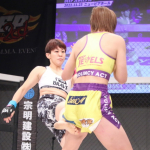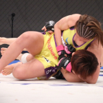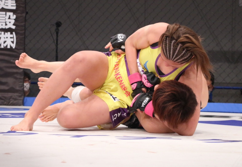 寝技を仕掛けるMANA(上)