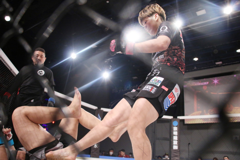 東がテイクダウンでダイヤモンドを倒しては打撃で攻めTKO勝利