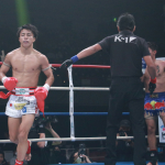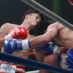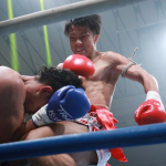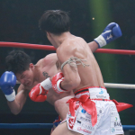 強烈なパンチを打ち込む石井