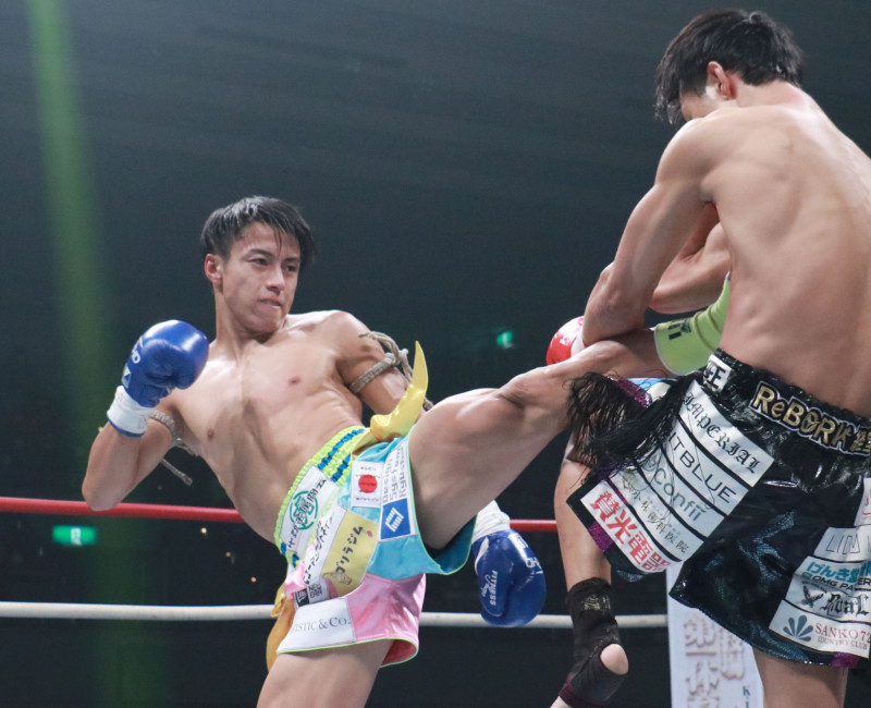 キックで攻める石井