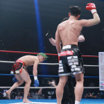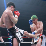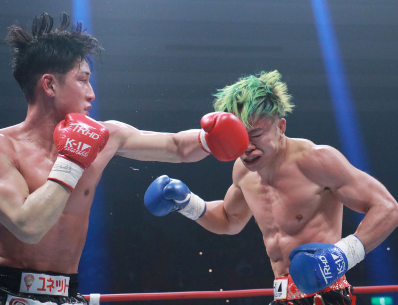 強烈なパンチを当てる林