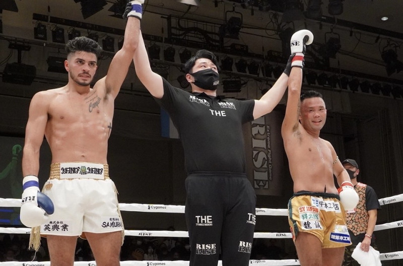 延長判定1-1でドロー、笑みを浮かべる緑川(右)