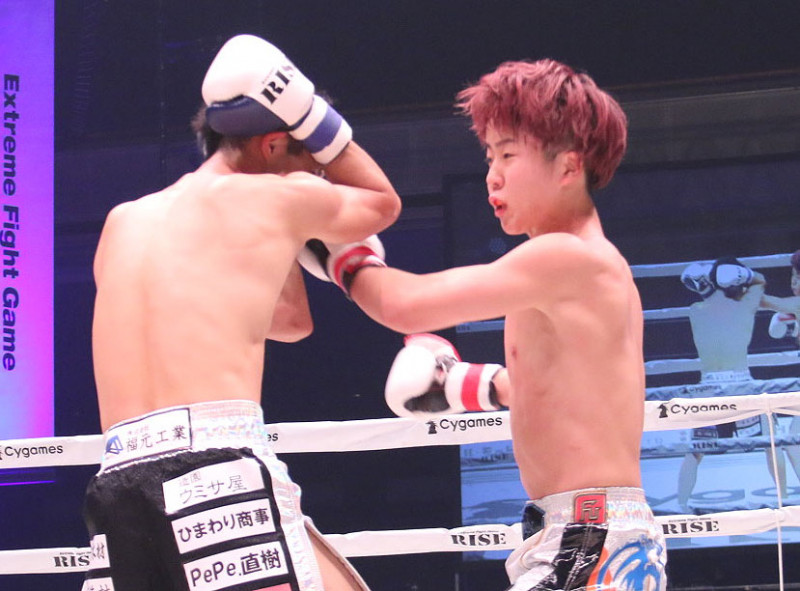 パンチを振るう那須川(右)