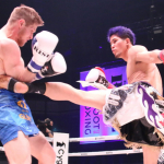 ヒザ蹴りを突き上げる原口