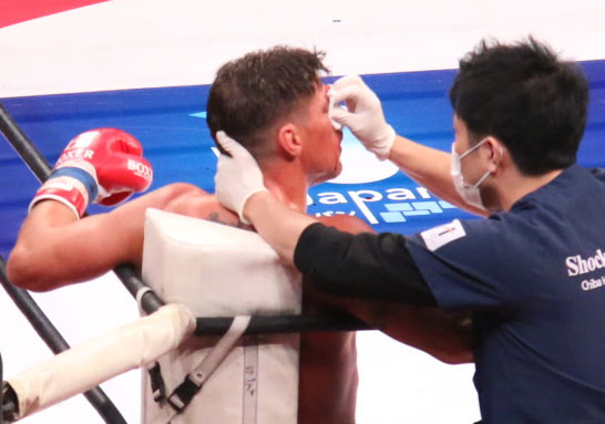 瞼から出血しドクターチェックを受けるクラウス