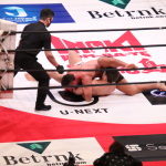 アームロックを仕掛けるロバト