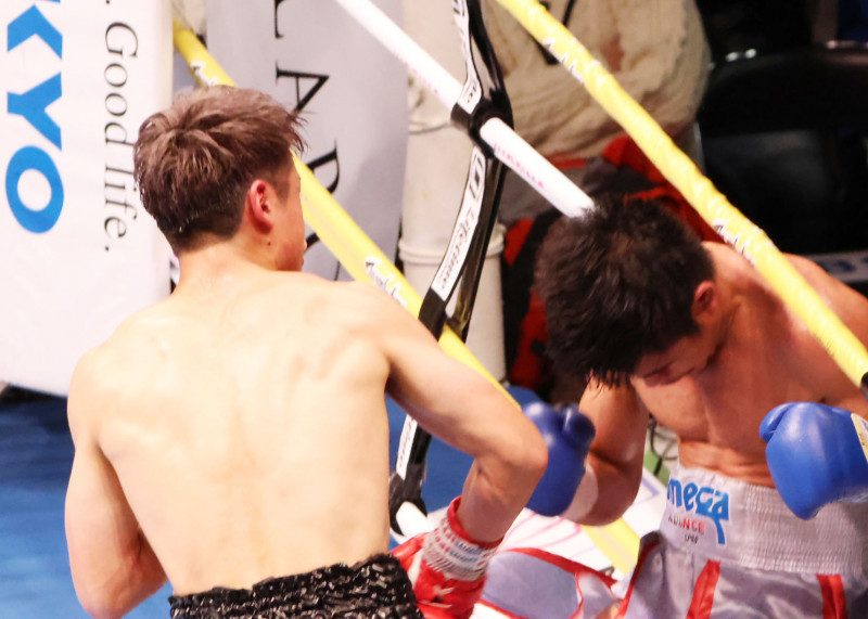 2、崩れる相手に右!