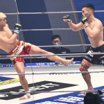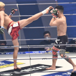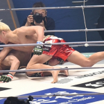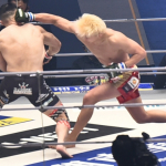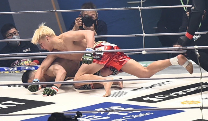 ダウンした中原に追撃を見舞う鈴木