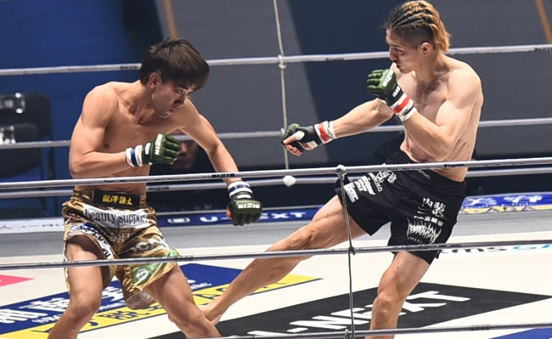 ローキックを蹴る井上
