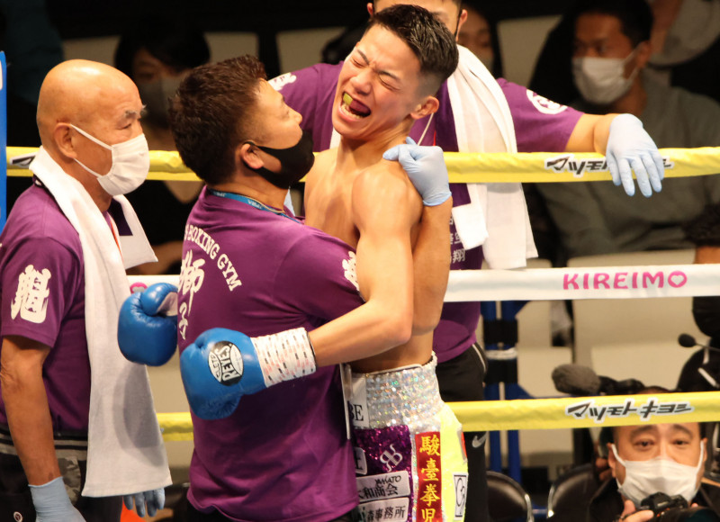 KO勝利し歓喜の渡辺