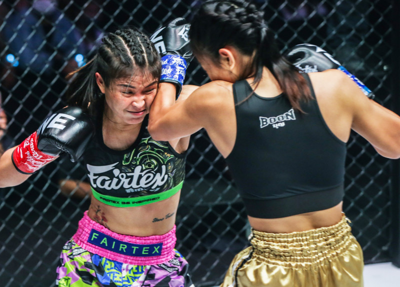 スタンプ(左)、次世代スーパーガールと真っ向勝負の激闘!©️ONE