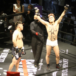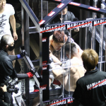 電話ボックスのような狭い空間で熱闘が繰り広げられた