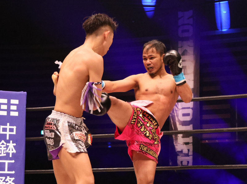 サンチャイが鋭いミドルキックで攻める