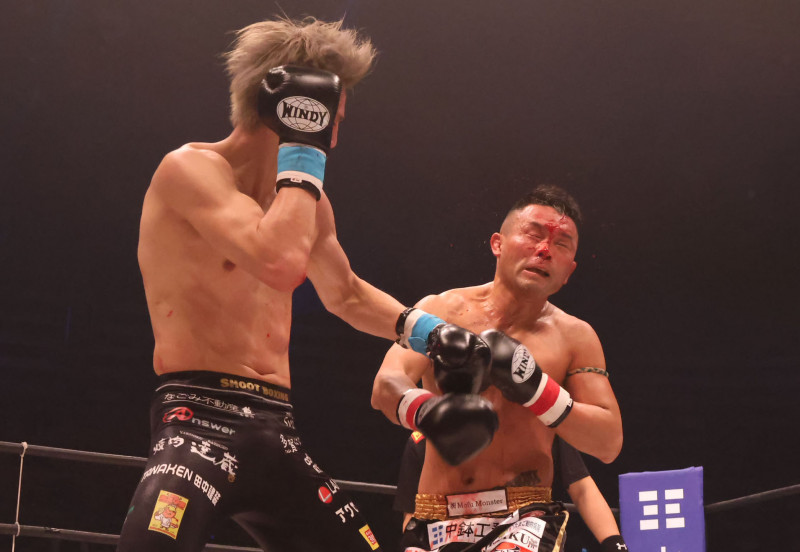 海人のパンチがクリーンヒット!流血KO負けする緑川
