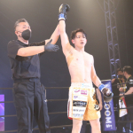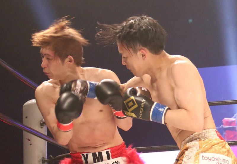 小倉が工藤をパンチ連打でKOした瞬間