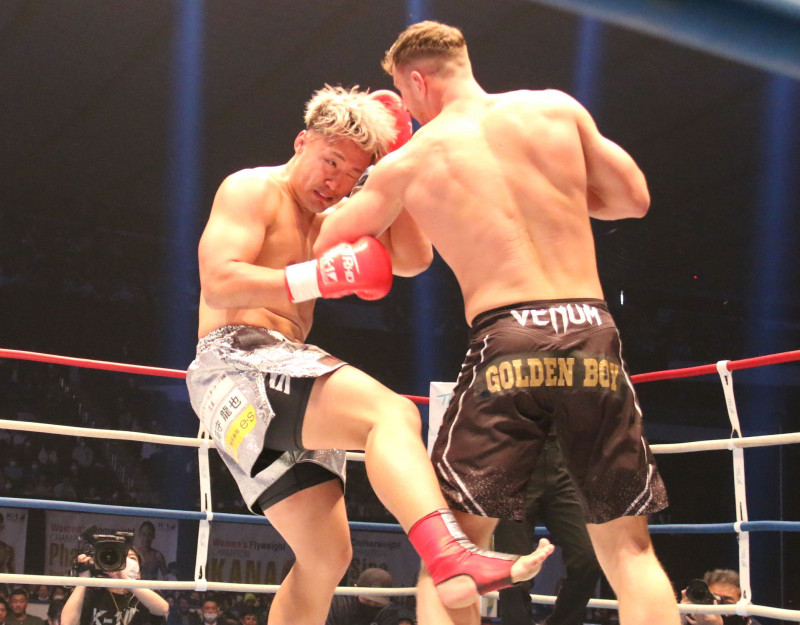右ローで前へ出る谷川
