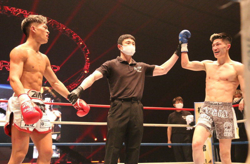 勝利を喜ぶ安本、悔しい顔の斗麗