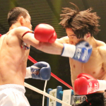 パンチでコンペットに襲いかかる金子