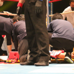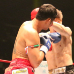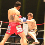 和島はフックを被弾、腰を落としたがゴングに救われた