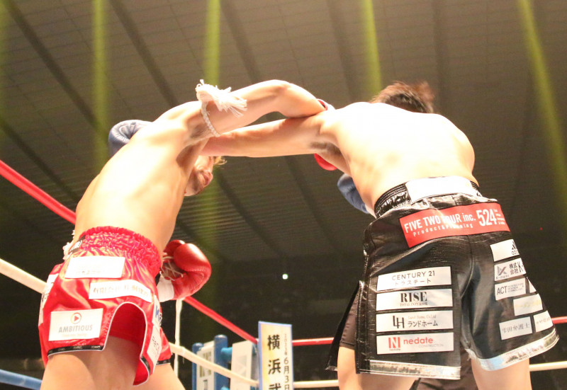 大和(左)が林の左にクロスカウンター!