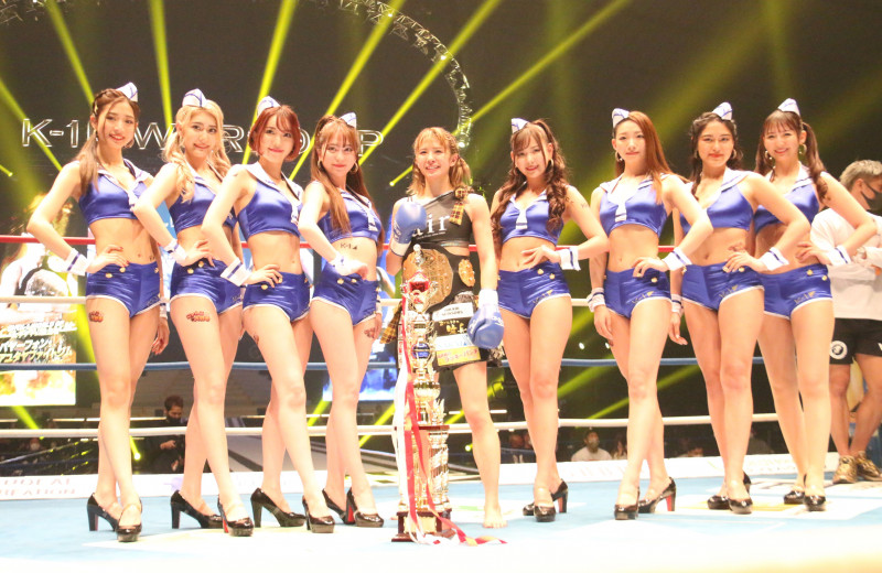 ベルトを巻いた菅原美優とK-1 GIRLS