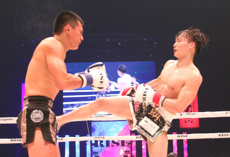 ローキックを当てる志朗