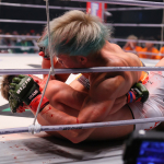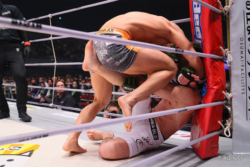 北方の顔にヒザを打ち込む神龍