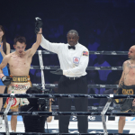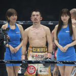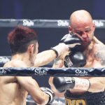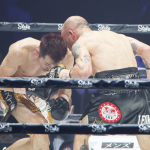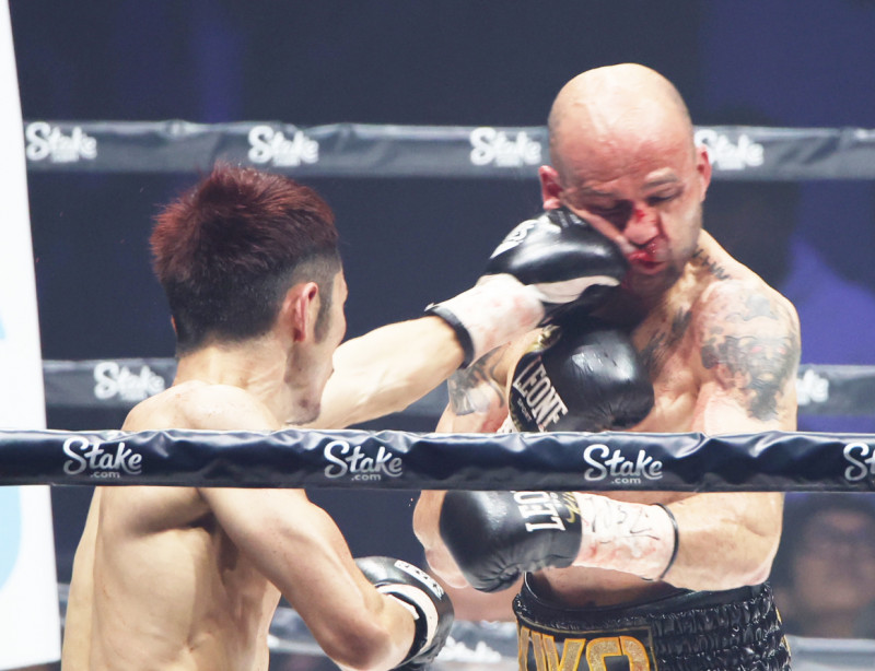 阿部のパンチが相手の顔に喰い込む決定的瞬間!