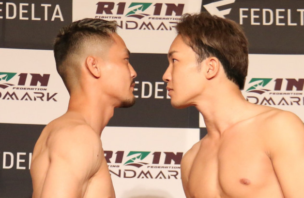 朝倉(右)が牛久(左)に判定3-0で勝利した(写真は前日計量時)